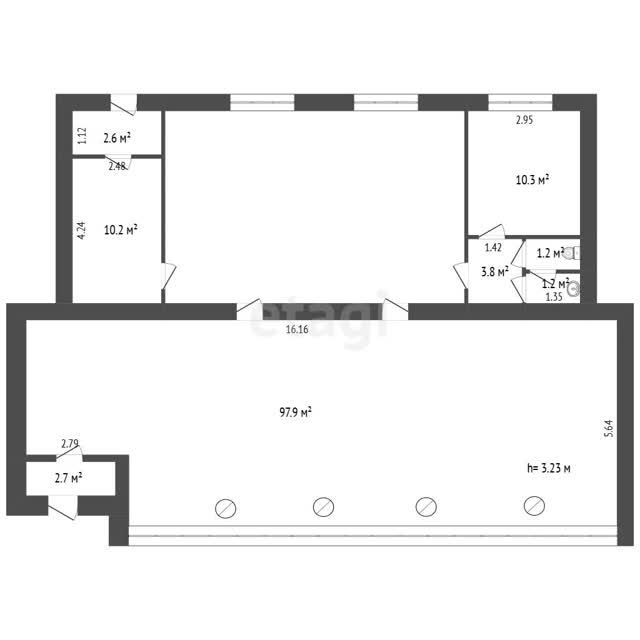 Общая площадь 173,8 кв.м. Высота помещений 3,2 м